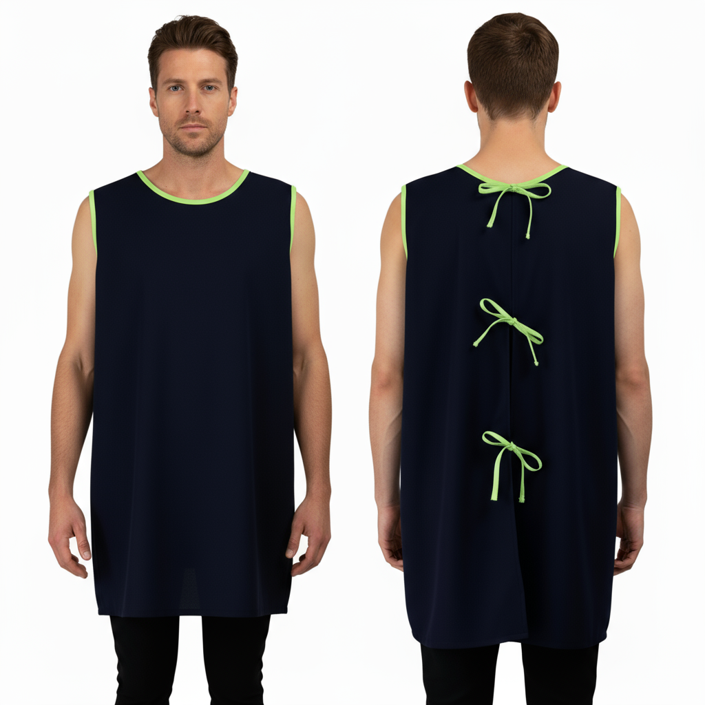 Tie back gown, over 100 colours to mix and match to suit your branding